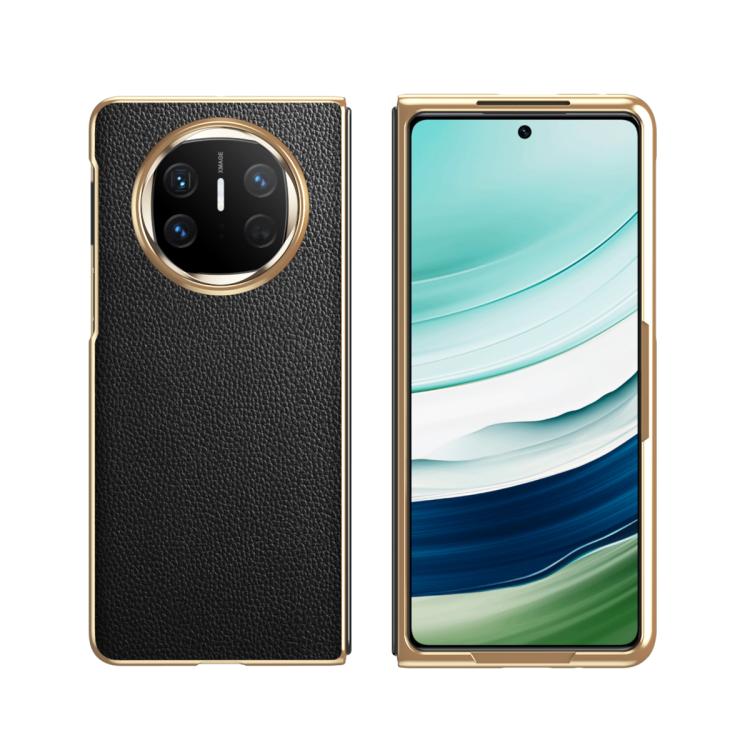 Funda de Cuero Galvanizado con Patrón de Lichi para Huawei Mate X6 con Lente de Vidrio (Negro)