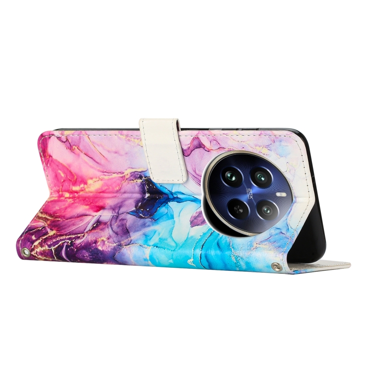 Funda de Cuero con Patrón de Mármol Pintado Global para Realme 12 4G / 12+ 5G (Rosa y Morado)