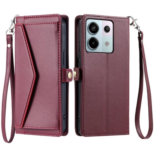 Funda de Cuero con Ranura para Múltiples Tarjetas y Billetera Global para Redmi Note 13 Pro 5G con Cordón (Rojo Vino)