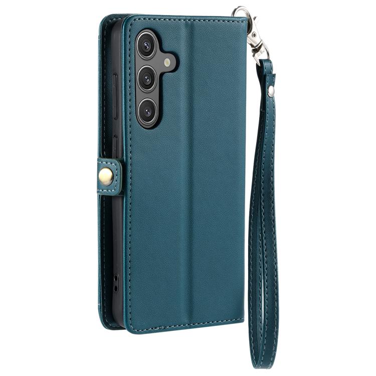 Funda de cuero con ranura para múltiples tarjetas y cordón para Samsung Galaxy A17 5G (verde)