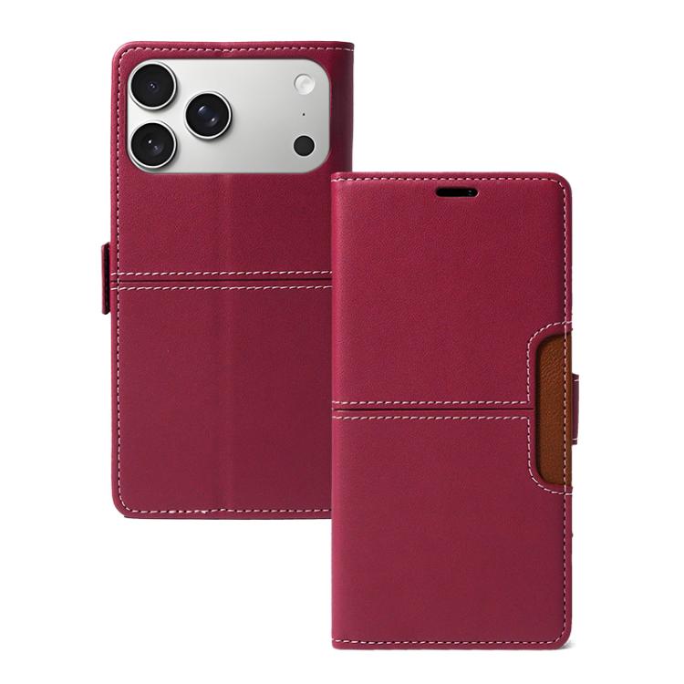 Funda de cuero con ranura para tarjeta y hebilla magnética para iPhone 17 Pro Max (roja)