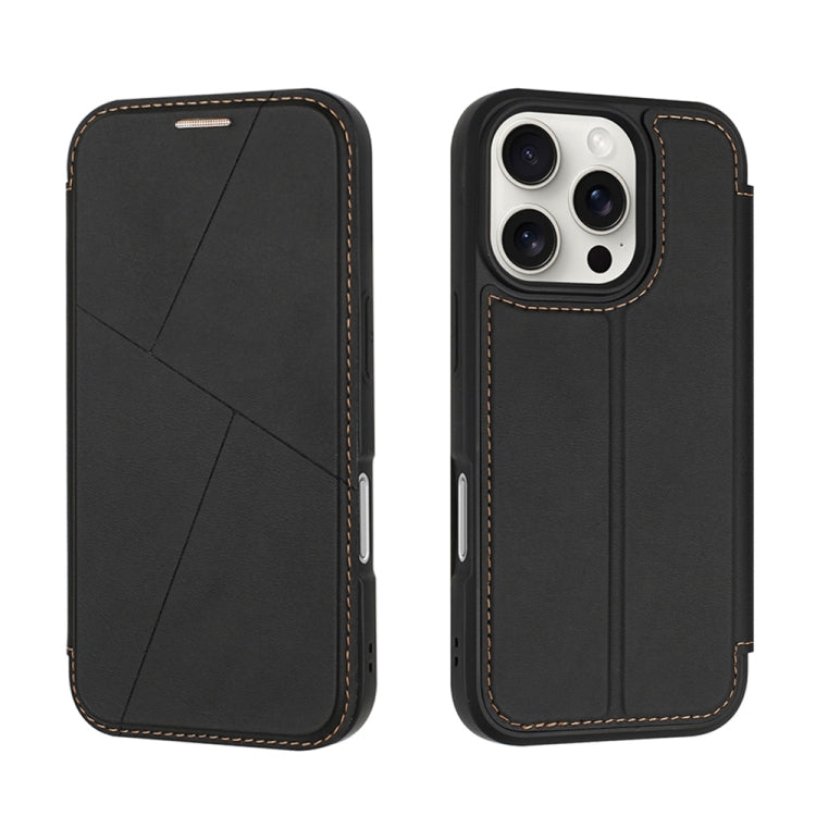 Funda de Cuero con Ranuras para Tarjetas RFID y Carcasa Magnética para iPhone 16 Pro Max (Negro)