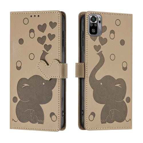 Funda de Cuero con Relieve de Elefante de Dibujos Animados para Redmi Note 10/Note 10S (Caqui)