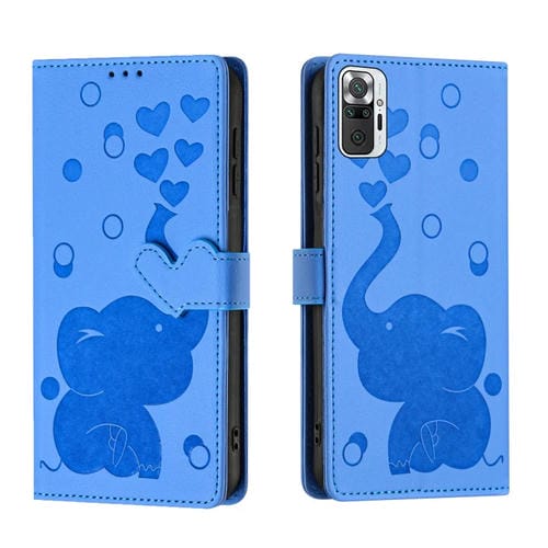 Funda de Cuero con Relieve de Elefante de Dibujos Animados para Redmi Note 10 Pro (Azul)