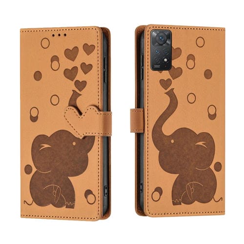 Funda de Cuero con Relieve de Elefante de Dibujos Animados para Redmi Note 11 Pro 4G/5G (Amarillo)