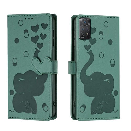Funda de Cuero con Relieve de Elefante de Dibujos Animados para Redmi Note 11 Pro 4G/5G (Verde)