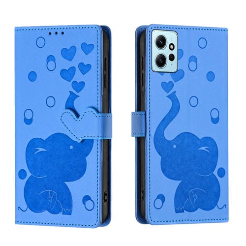 Funda de Cuero con Relieve de Elefante de Dibujos Animados para Redmi Note 12 4G (Azul)