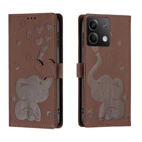 Funda de Cuero con Relieve de Elefante de Dibujos Animados para Redmi Note 13 Pro 5G (Marrón)