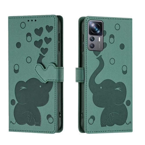 Funda de Cuero con Relieve de Elefante de Dibujos Animados para Xiaomi 12T/12T Pro (Verde)