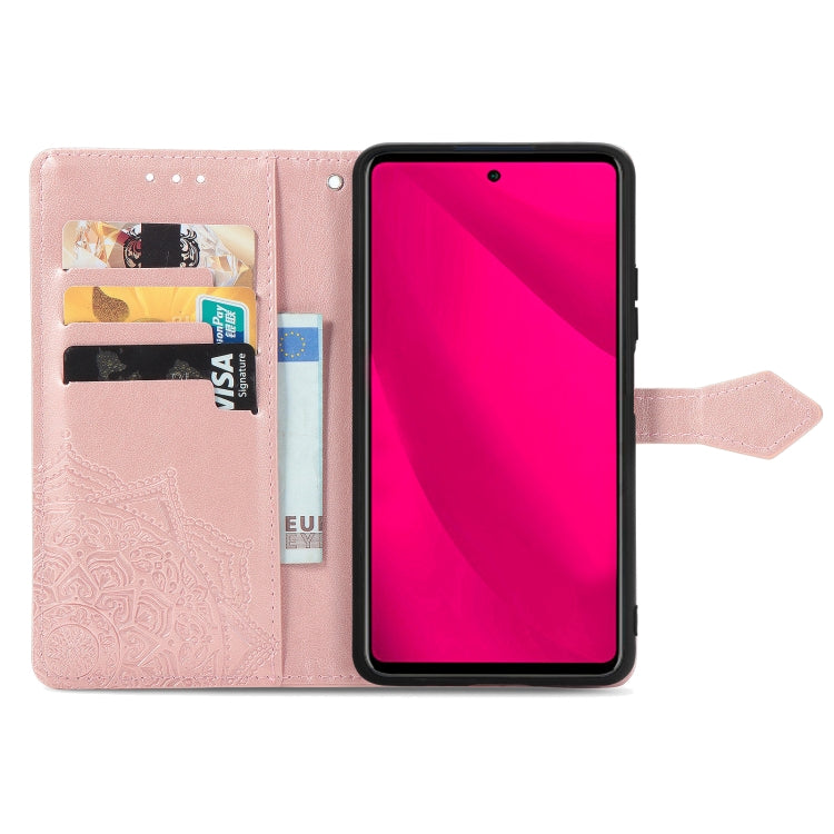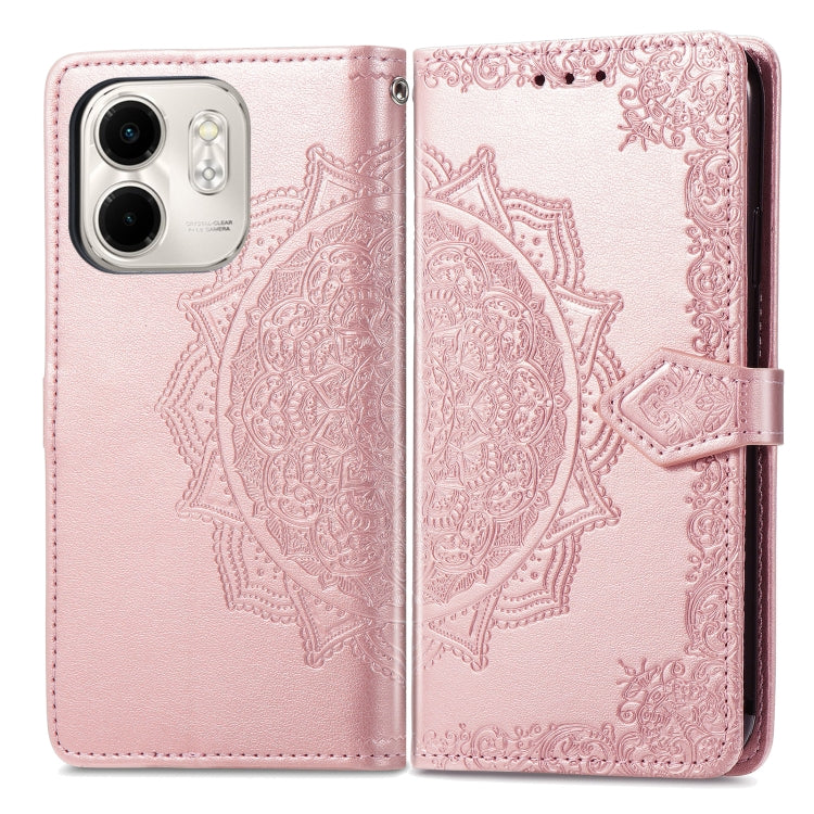 Funda de Cuero con Relieve Flor de Mandala para Infinix Smart 9 (Oro Rosa)