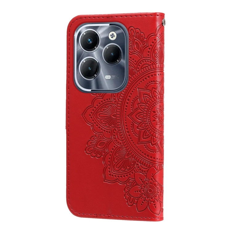 Funda de Cuero con Relieve Flores Siete Pétalos para Infinix Hot 40 y Hot 40 Pro (Roja)