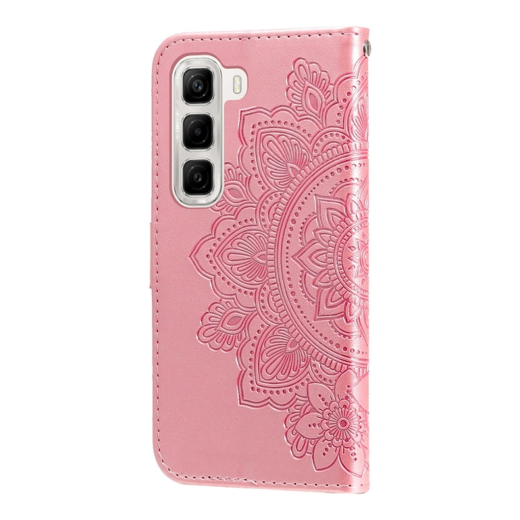Funda de Cuero con Relieve Flores Siete Pétalos para Infinix Hot 50 4G (Oro Rosa)