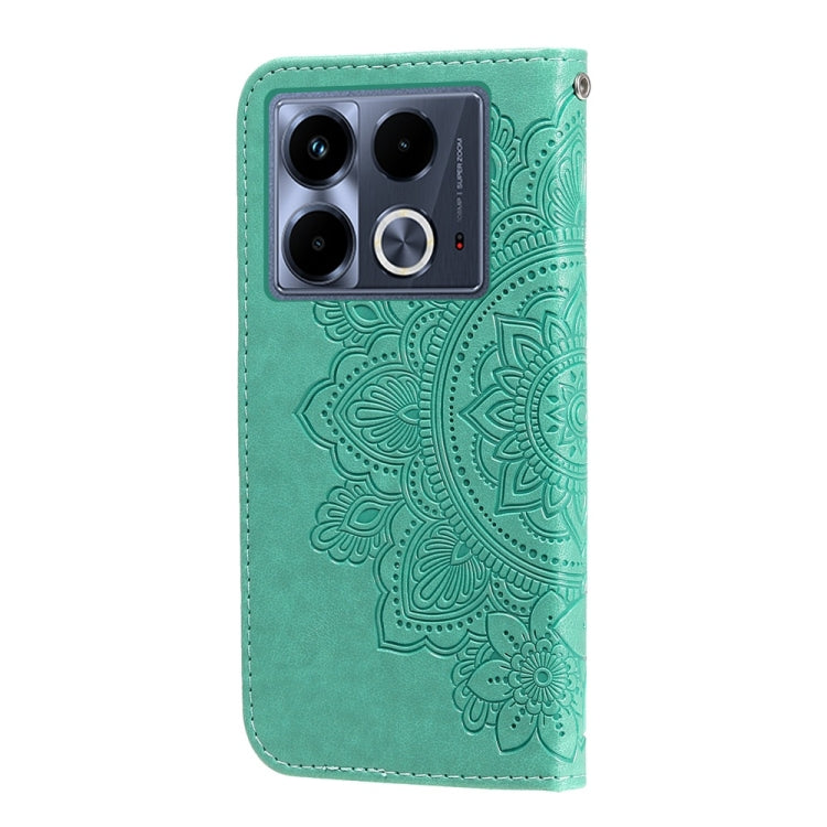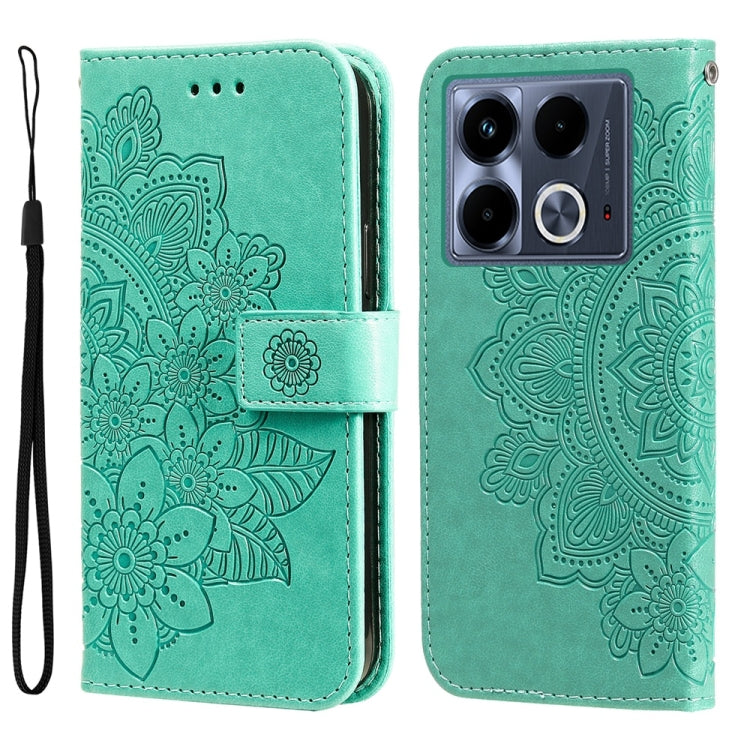 Funda de Cuero con Relieve Flores de Siete Pétalos para Infinix Note 40 4G (Verde)
