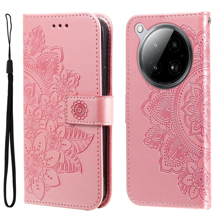 Funda de Cuero con Relieve Flores de Siete Pétalos para Infinix Zero 40 4G/5G (Oro Rosa)