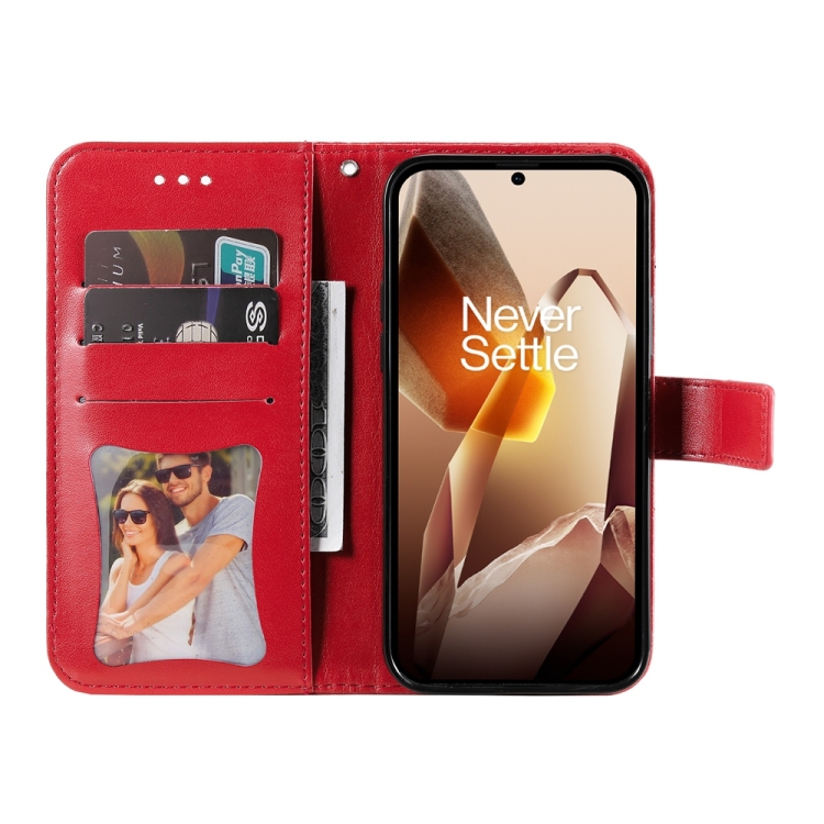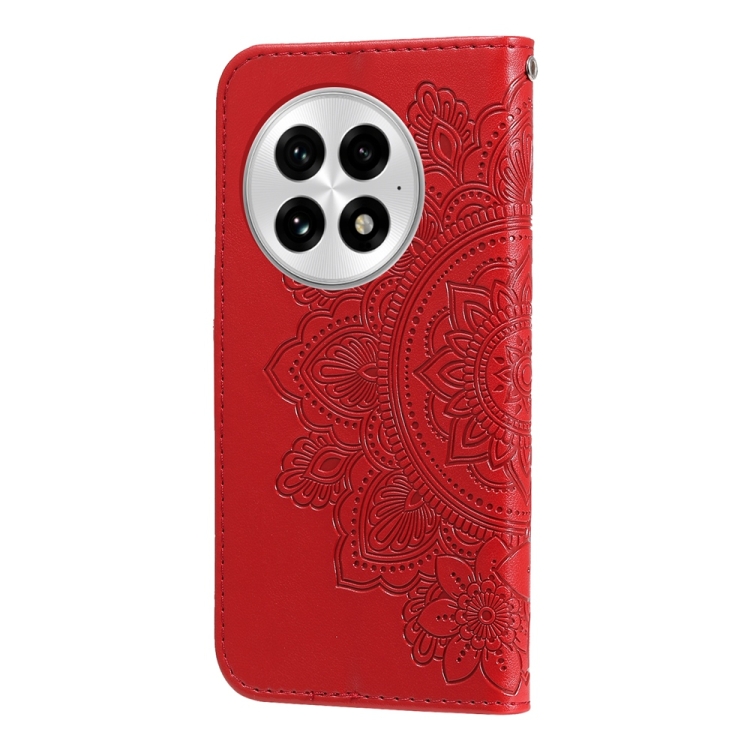 Funda de Cuero con Relieve de Flores de Siete Pétalos para OnePlus 13 (Rojo)