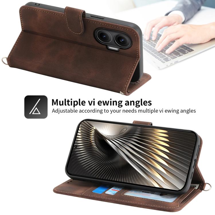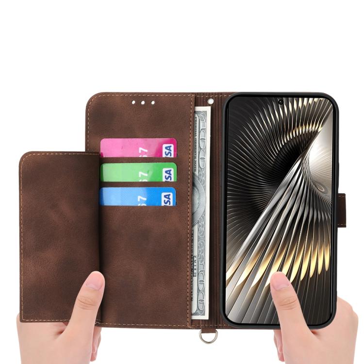 Funda de cuero con relieve de flores para Redmi Turbo 4 Pro / Xiaomi Poco F7 (marrón)