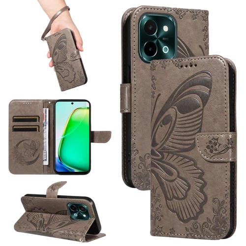 Funda de Cuero con Relieve de Mariposa para Vivo Y28 4G (Gris)