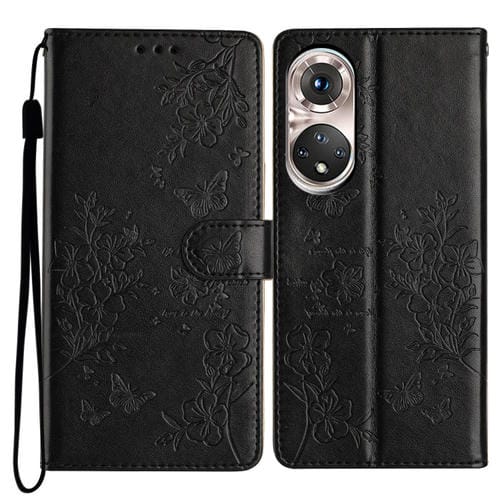 Funda de Cuero con Relieve de Mariposa y Flor para Huawei P50 (Negra)