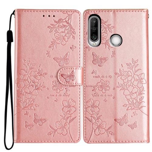 - 1x Funda de Cuero para Huawei Y6P con Relieve de Mariposa y Flor (Oro Rosa)
