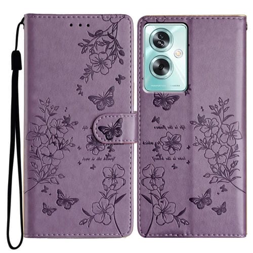 Funda de Cuero con Relieve de Mariposa y Flor para Oppo A79/A2 5G (Morado)