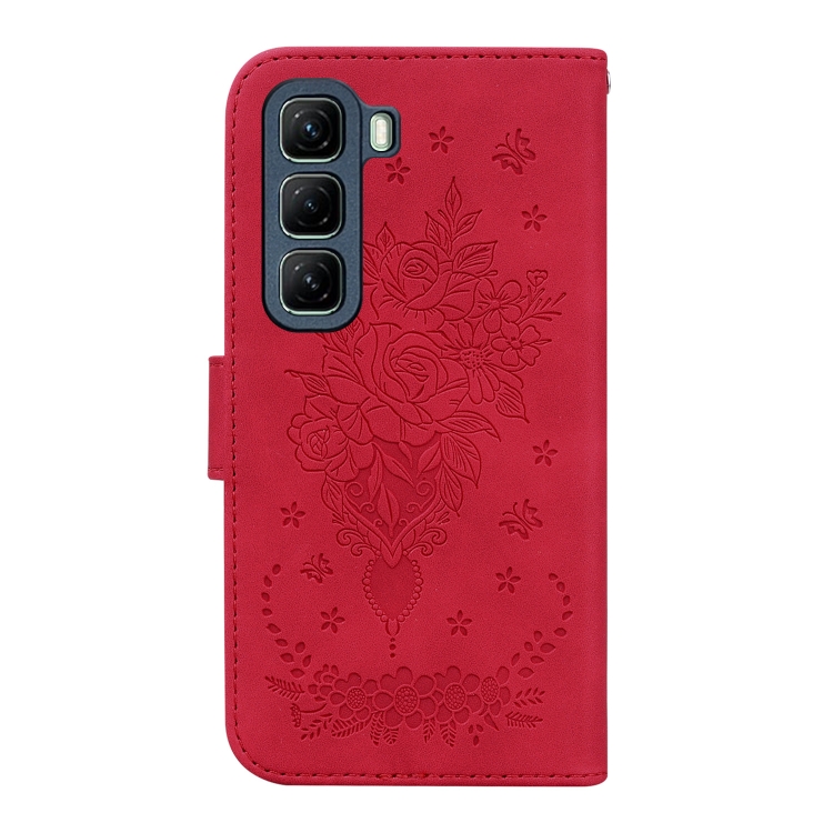Funda de Cuero con Relieve Mariposa y Rosa para Infinix Hot 50 5G (Roja)