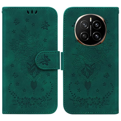 Funda de Cuero con Relieve Mariposa y Rosa para Honor Magic7 (Verde)