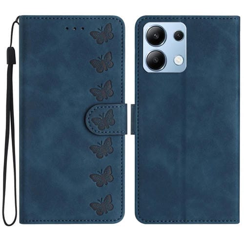 Funda de Cuero con Relieve de Siete Mariposas para Redmi Note 13 4G (Azul)