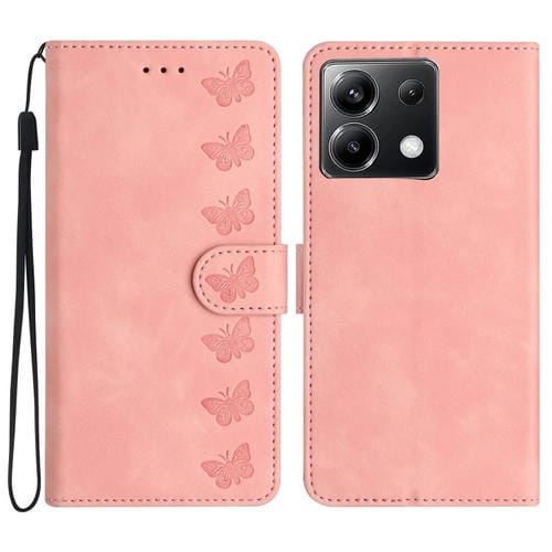 Funda de Cuero con Relieve de Siete Mariposas para Xiaomi Poco X6 (Rosa)