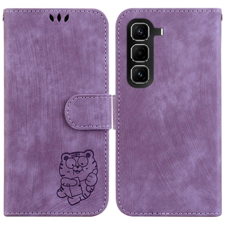 Funda de cuero con relieve de tigre para Infinix Hot 50 Pro+ 4G (morado)
