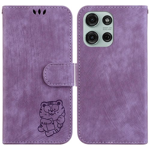Funda de Cuero con Relieve de Tigre para Motorola Moto G75 5G (Morado)