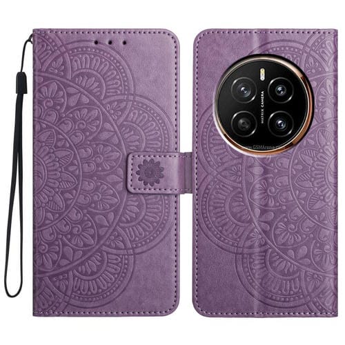 Funda de Cuero con Relieve Floral para Honor Magic7 Pro (Morado)