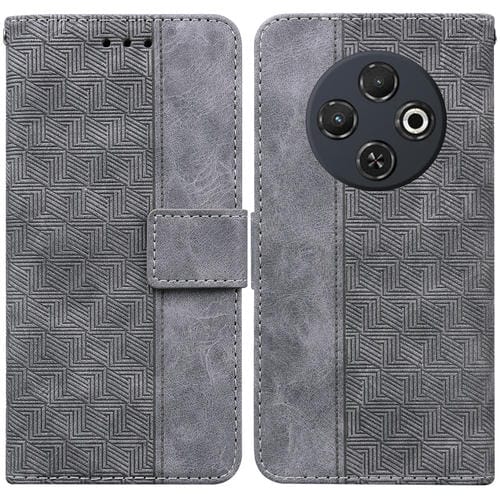 Funda de Cuero para Tecno Spark 30C con Relieve Geométrico (Gris)