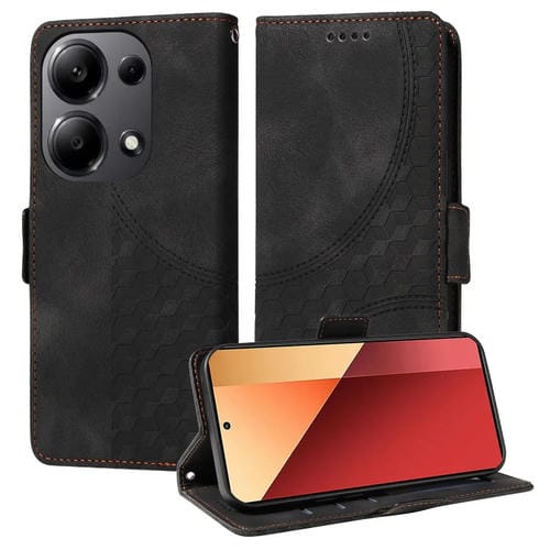 Funda de Cuero con Relieve Romboide y Estrellas para Redmi Note 13 Pro 4G (Negra)