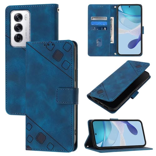 Funda de Cuero con Relieve y Tacto de Piel para Oppo Reno12 5G (Azul)