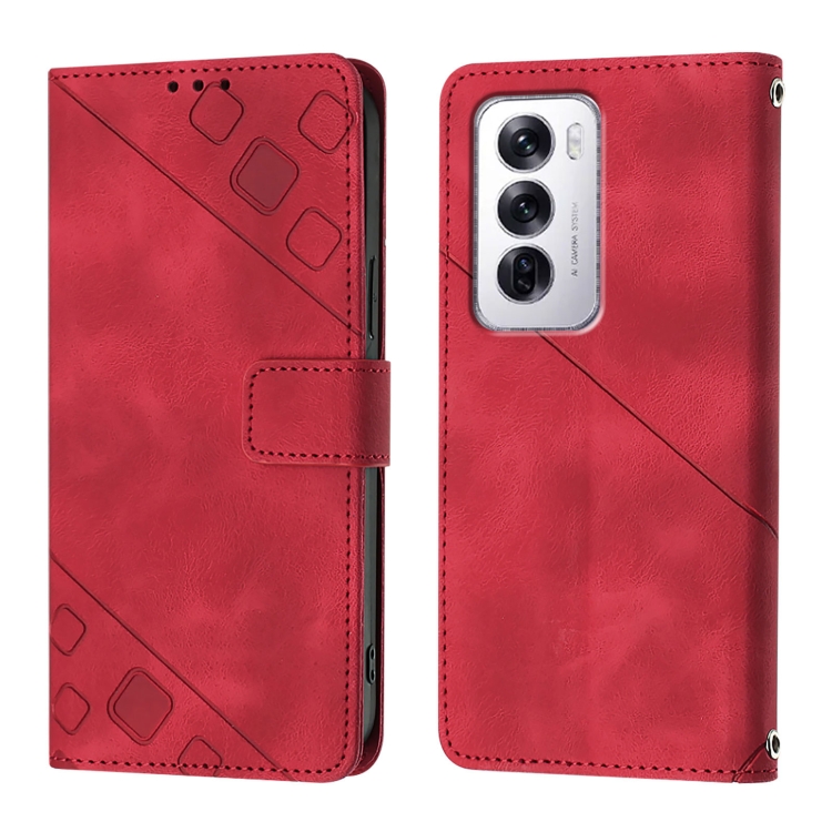 Funda de Cuero con Relieve y Tacto de Piel para Oppo Reno12 5G Global (Rojo)