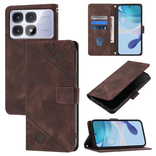 Funda de Cuero con Relieve y Tacto de Piel para Redmi K70 Ultra 5G (Marrón)