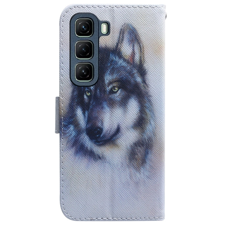 Funda de Cuero con Tapa para Infinix Hot 50 4G con Dibujo a Color (Lobo Blanco)