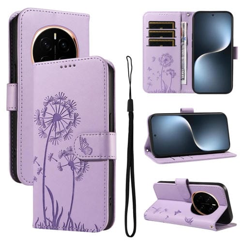Funda de Cuero con Tapa y Estampado Diente de León para Honor Magic7 5G (Morado)