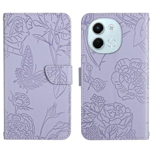 Funda de Cuero con Tapa con Relieve de Mariposa para Tecno Spark 30 5G (Morado)