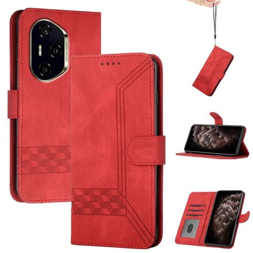 Funda de Cuero con Tapa Cúbica para Honor 300 Pro y Honor 300 Ultra (Roja)