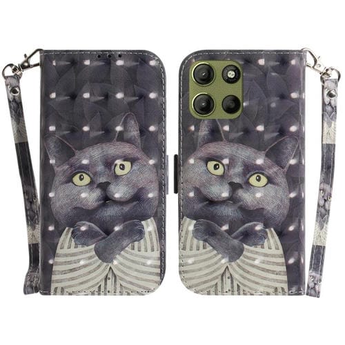 Funda de Cuero con Tapa 3D para Motorola Moto G15 (Hug Cat)