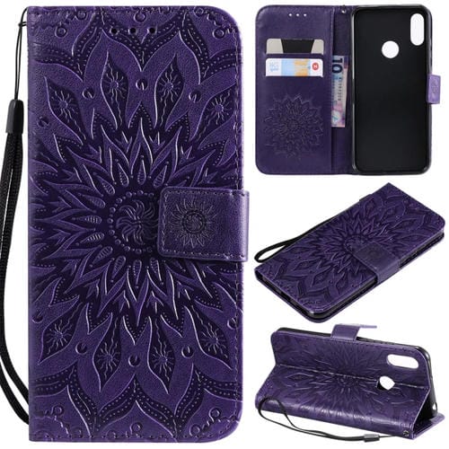 Funda de Cuero con Tapa Horizontal para Huawei Honor Play 8A / Y6 (2019) con Ranura, Soporte y Cordón (Morado)