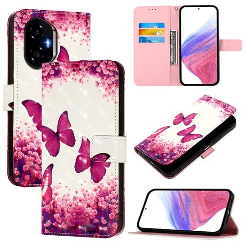 Funda de Cuero con Tapa Horizontal y Pintura 3D para Honor 300 (Mariposa Rosa)