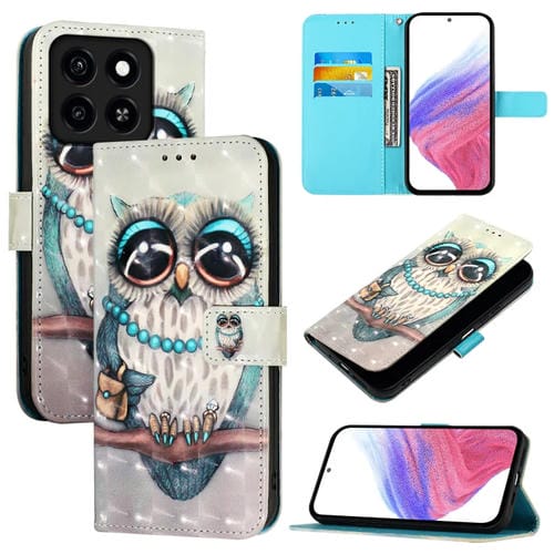 Funda de Cuero con Tapa Horizontal y Pintura 3D para ZTE Blade A35/A55 (Búho Gris)