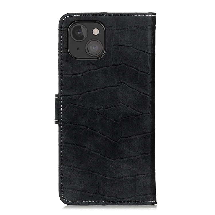Funda de Cuero iPhone 13 Mini Tapa Horizontal Textura Cocodrilo Soporte Ranuras Tarjetas Billetera (Negro)