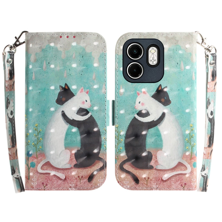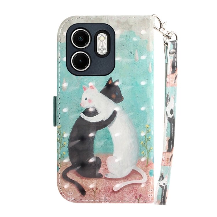 Funda de Cuero con Tapa Horizontal 3D para Infinix Hot 50I y Smart 9 (Gato Blanco y Negro)