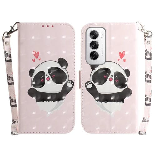 Funda de Cuero con Tapa Horizontal y Diseño 3D para Oppo Reno12 5G Global (Panda con Forma de Corazón)