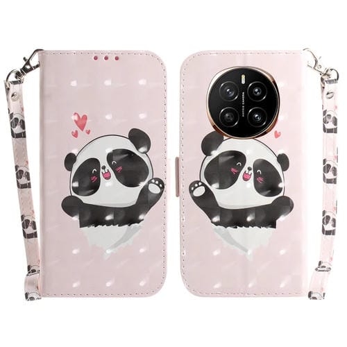 Funda de Cuero con Tapa Horizontal y Diseño 3D para Honor Magic7 (Panda Corazón)