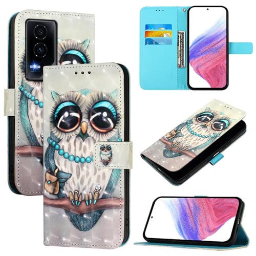 Funda de Cuero con Tapa Horizontal y Pintura 3D para Honor GT (Búho Gris)