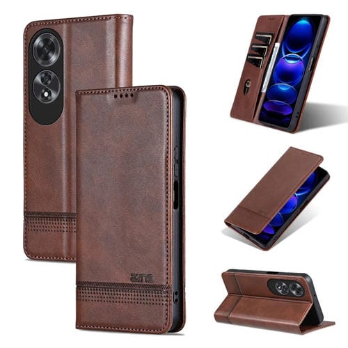 Funda de Cuero con Tapa Magnética con Textura de Piel de Becerro Azns para Oppo A60 4G (Marrón Oscuro)